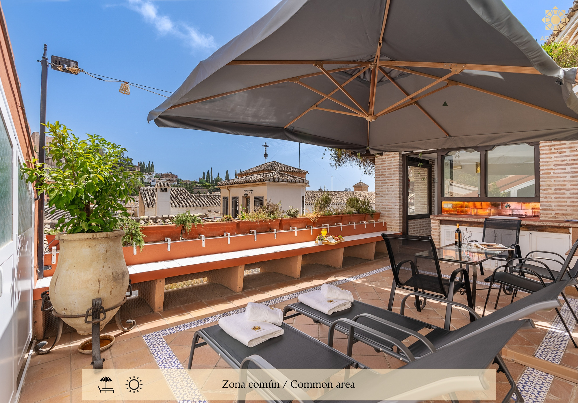 Ideal para parejas o escapadas urbanas, con acceso a nuestra terraza comunitaria desde la que disfrutarás de las mejores vistas de Granada, aunque el apartamento no tenga vistas directas.