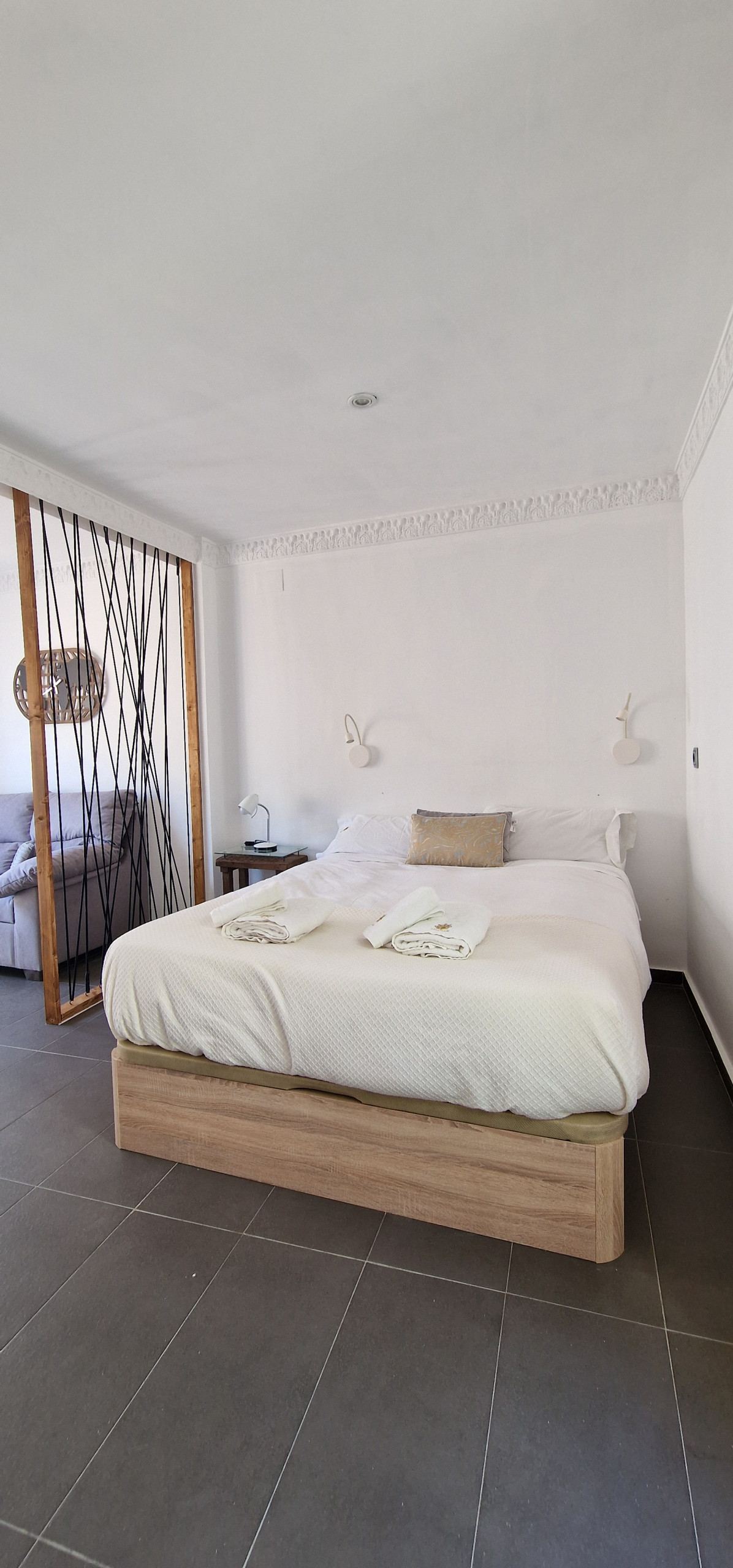Con una decoración cálida y envolvente, este espacio está diseñado para disfrutar sin complicaciones. Tiene una pequeña zona de cocina auxiliar, baño completo y acceso, como todos nuestros huéspedes, a la terraza comunitaria con vistas increíbles a la Alhambra.