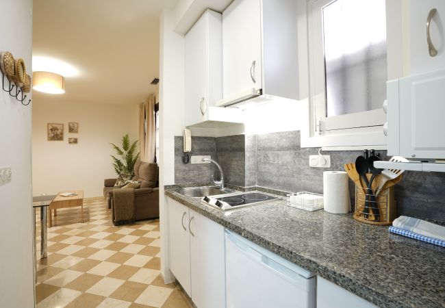 El apartamento posee 1 dormitorio(s) y capacidad para 4 personas. Alojamiento de 40 m² confortable. Se encuentra a 0 m de la playa de arena y está ubicado en una zona ideal para familias y en el casco urbano.Dispone de plancha, acceso internet (wifi), secador, calefacción bomba de calor, aire acondicionado en todo el alojamiento, parking cubierto en edificio cercano, 1 Televisor.La cocina independiente, de inducción, está equipada con nevera, microondas, congelador, vajilla/cubertería, utensilios/cocina, cafetera, tostadora, hervidor de agua y exprimidor.