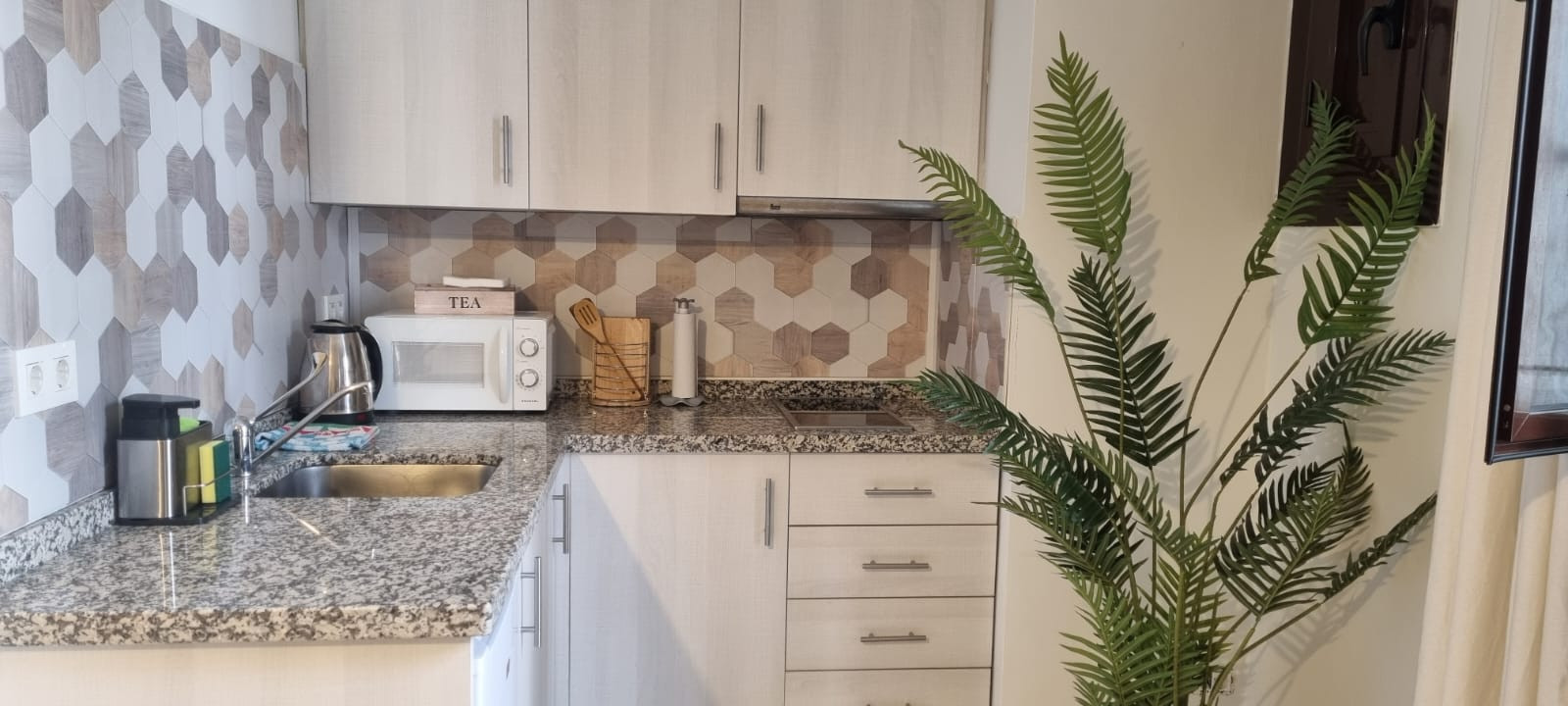 The apartment in Granada has 1 bedroom(s) and capacity for 2 people. 30 m² accommodation is nice and has a fully equipped kitchen, with mountain views. It is located in a charming area and in the urban center. It has elevator, iron, internet access (wifi), hair dryer, heat pump heating, air conditioning, 1 TV. The American kitchen is equipped with refrigerator, microwave, freezer, dishes/cutlery, kitchen utensils, coffee maker, toaster, water kettle and juicer.