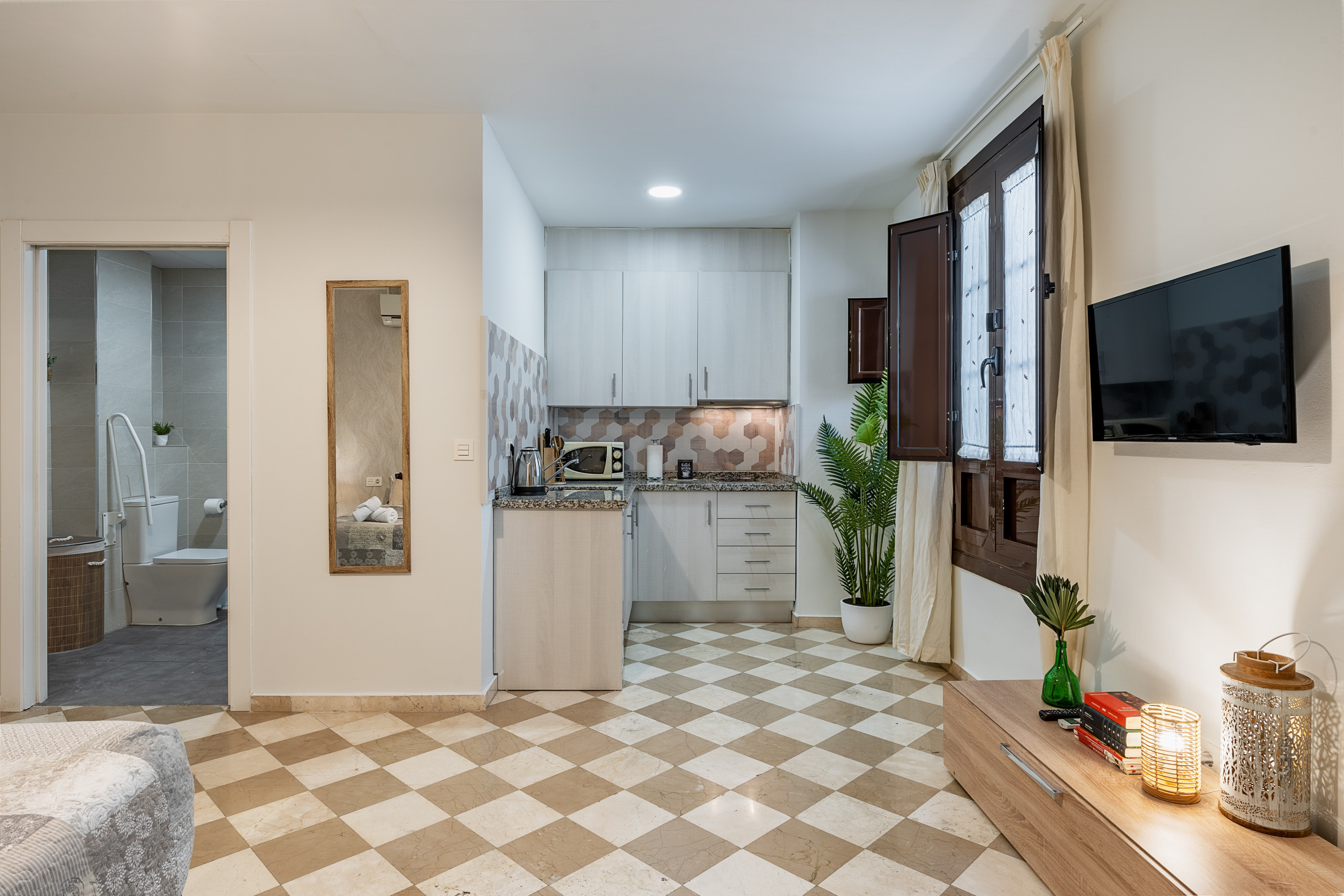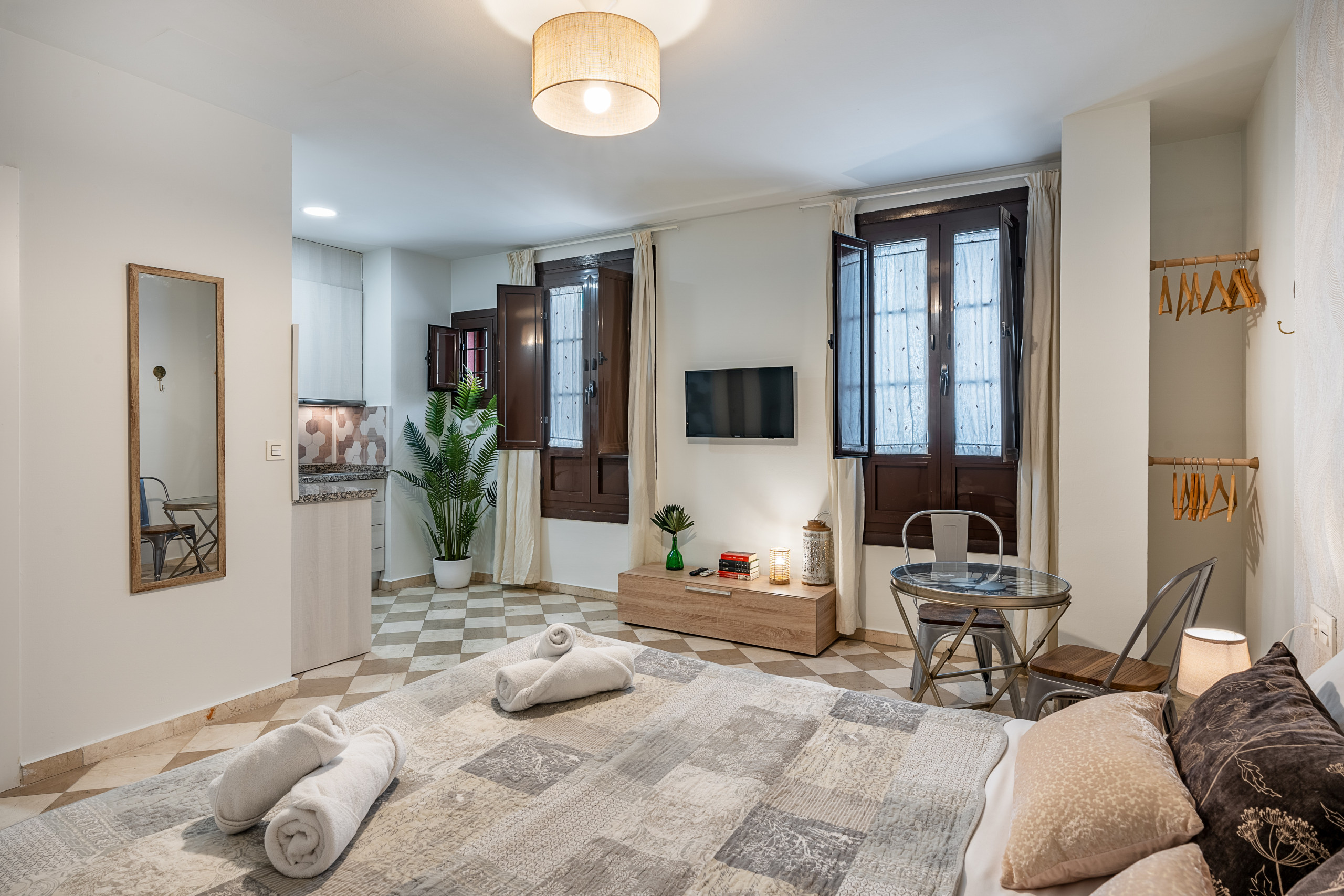 Located in the heart of Granada, a few steps from the Cathedral and surrounded by history, tapas, and charming alleys, this studio allows you to move on foot and experience the city as it deserves.