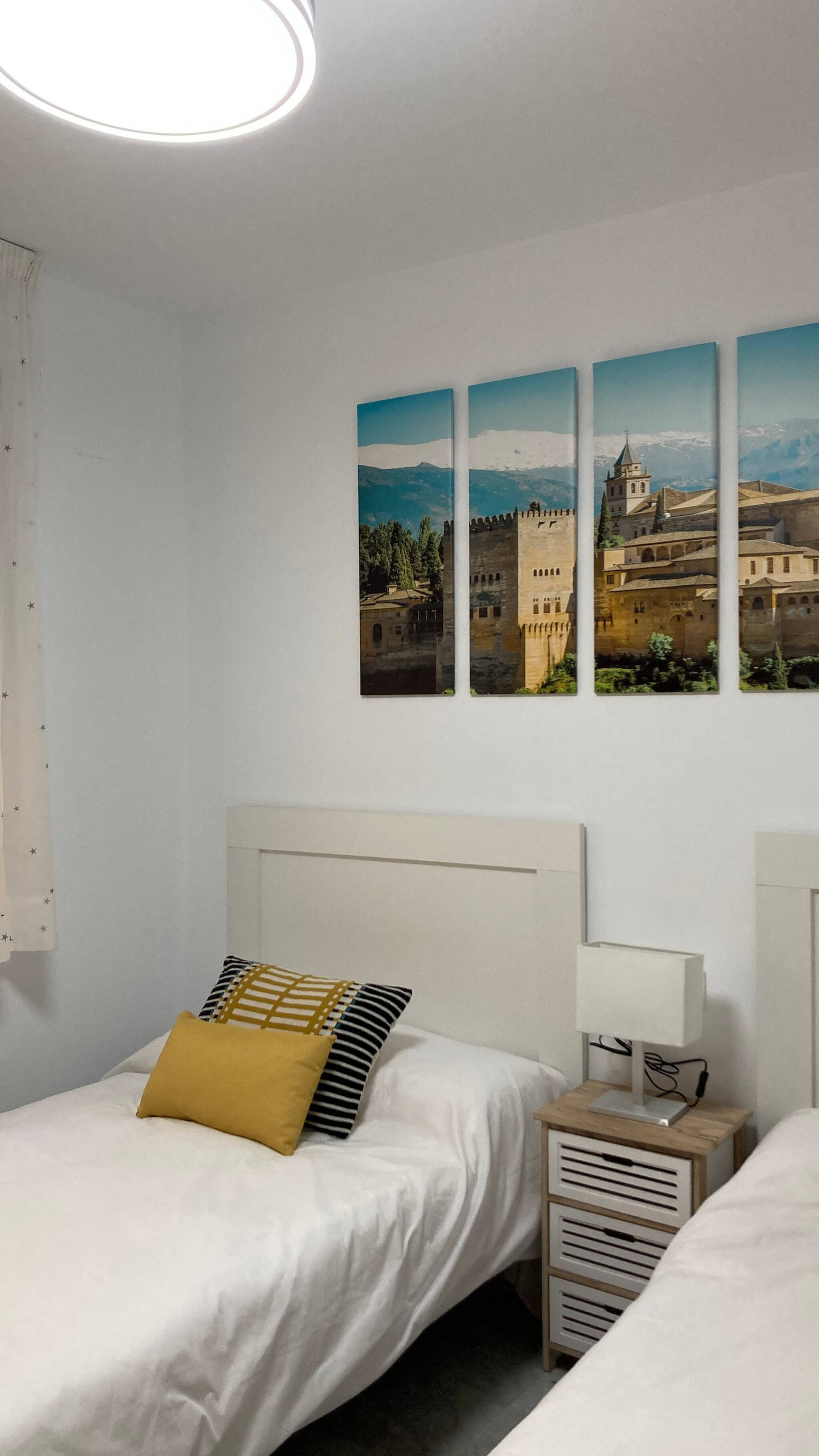 "Welcome to your modern oasis in Granada, a cozy 50m² ground floor apartment, ideal for families or small groups. With a contemporary design, the space combines style and comfort. Enjoy two bedrooms with double beds and a sofa bed in the living room, perfect for up to six guests. The living room, equipped with the latest generation TV and access to Netflix and Disney Plus, is the perfect place to relax after a day exploring Granada's vibrant culture.