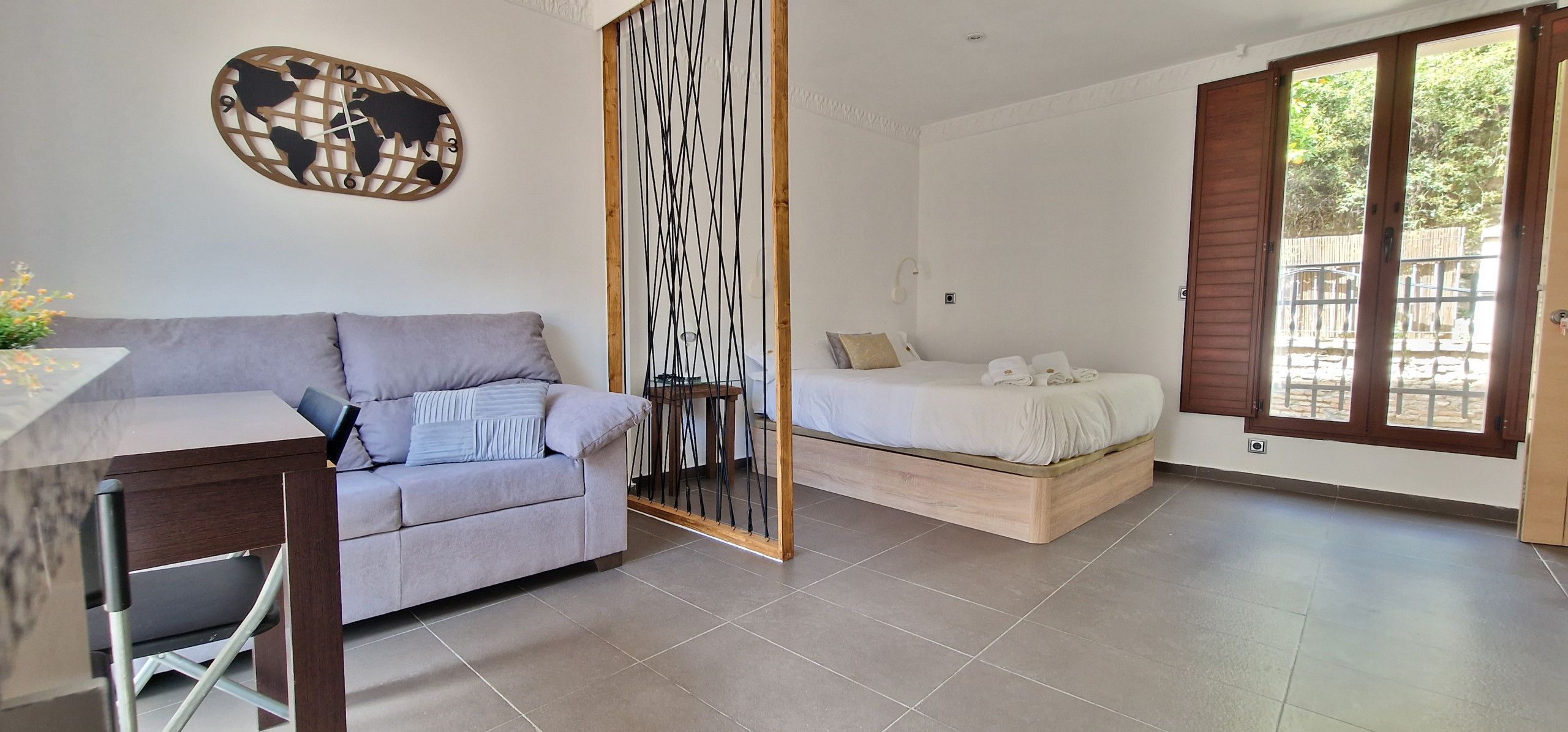 L'APM8 est de ces espaces qui, sans être grands, ont tout. Un studio en rez-de-chaussée avec chambre en mezzanine, parfait pour ceux qui recherchent un logement pratique mais avec une touche différente.