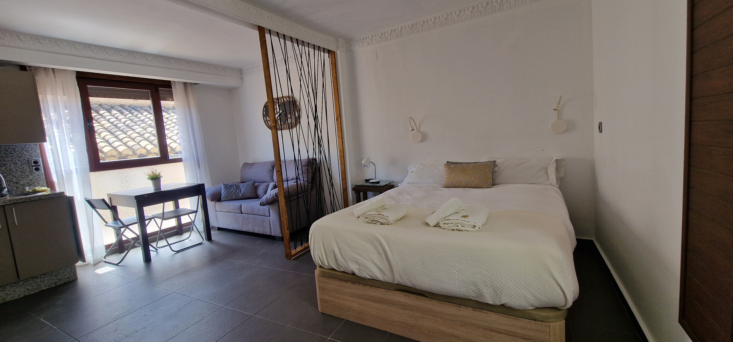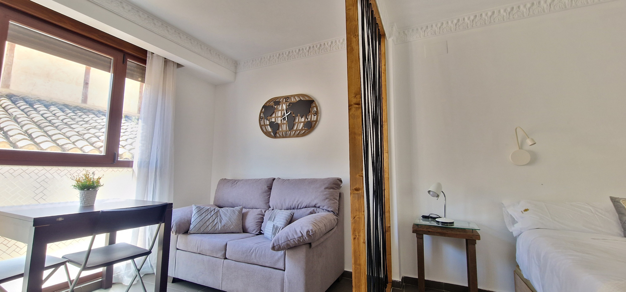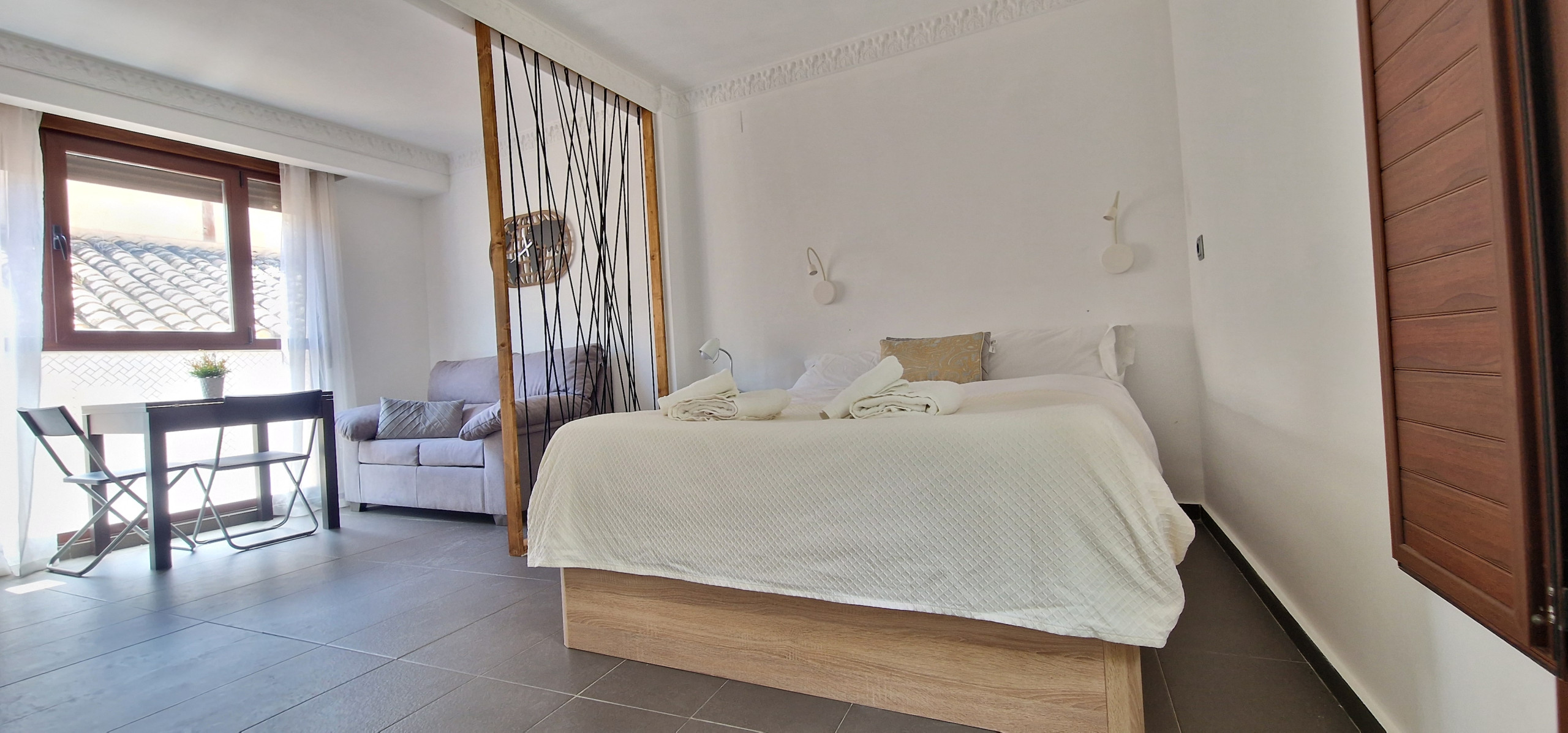 Idéal pour les couples ou les escapades urbaines, avec accès à notre terrasse communautaire depuis laquelle vous profiterez des plus belles vues sur Grenade, même si l'appartement n'a pas de vue directe.