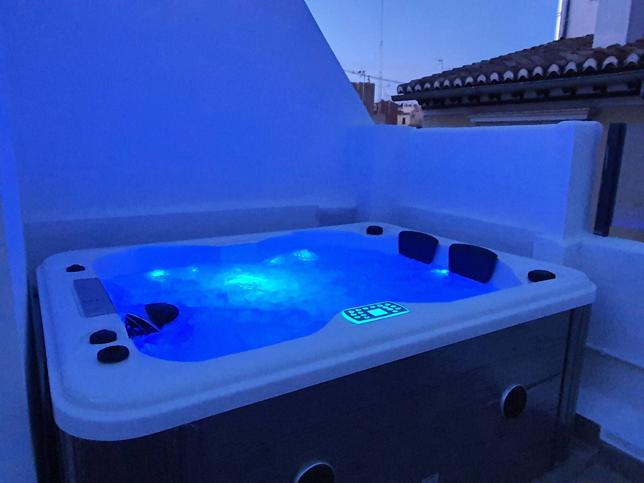 Il jacuzzi si trova sul tetto. È condiviso con altri appartamenti che gestisco anch'io. L'uso è esclusivo, si prenota preventivamente in modo completamente gratuito iscrivendosi nel quadrante. In quel momento viene già prenotato e nessun altro potrà accedere al jacuzzi.