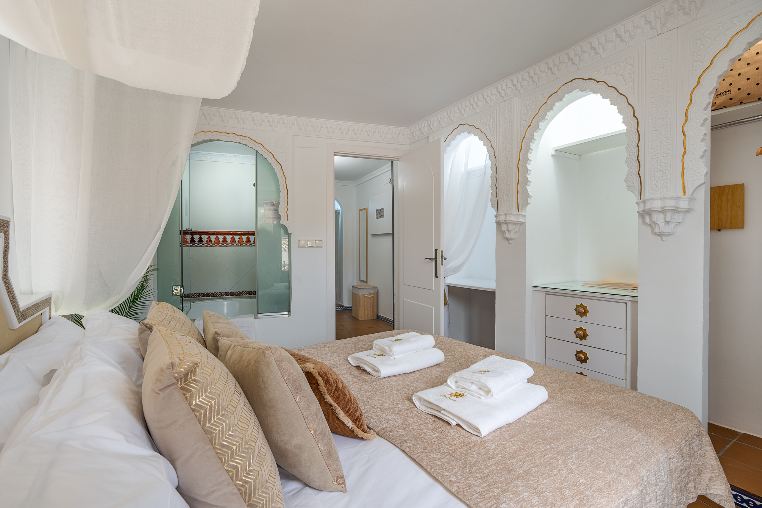 Questo appartamento è un regalo per i sensi. La sua decorazione di ispirazione nazarì, la luce che entra dai balconi e la spettacolare vasca circolare accanto al letto creano un'atmosfera calda, intima e molto speciale.