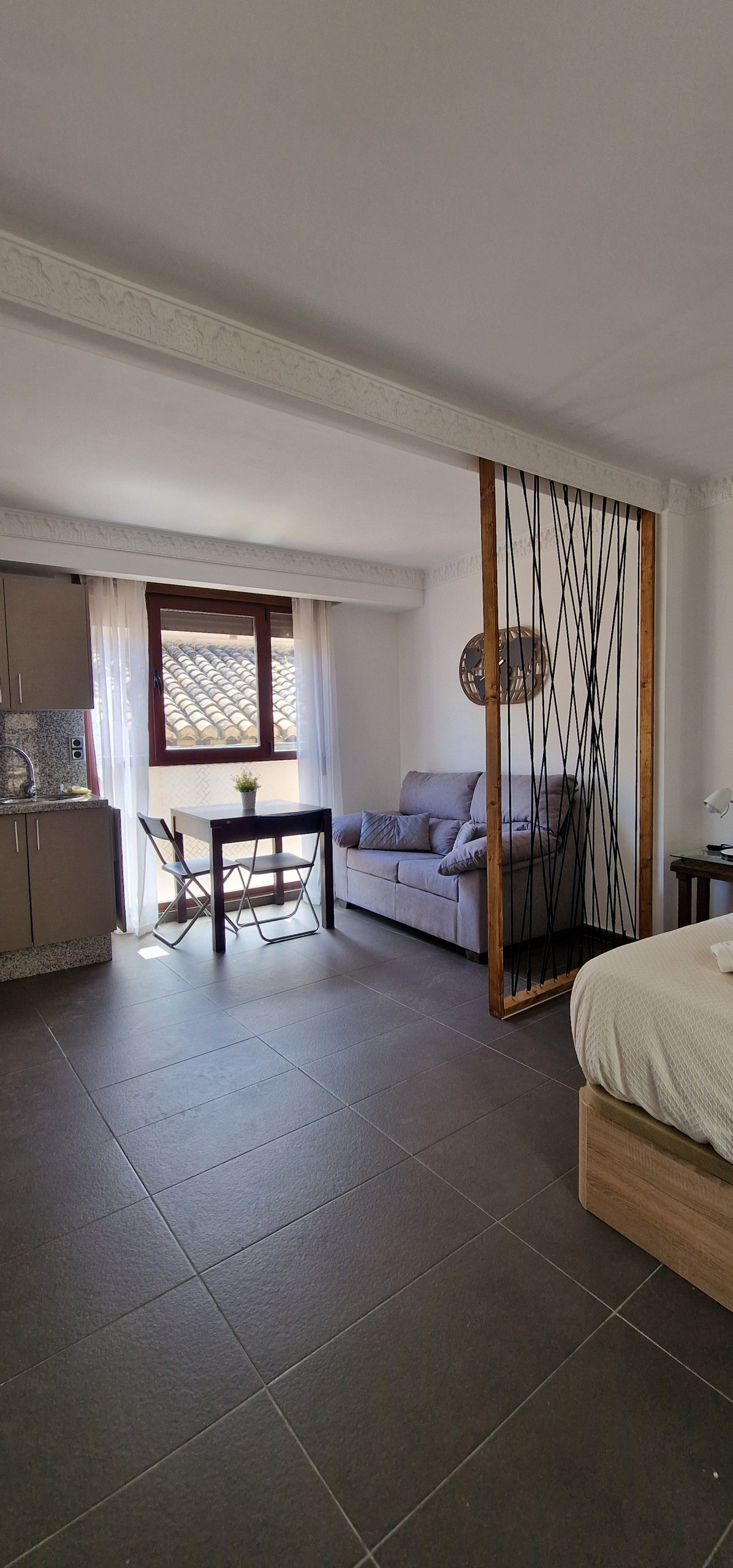Con un arredamento caldo e accogliente, questo spazio è progettato per godersi senza complicazioni. Ha una piccola zona cucina ausiliaria, bagno completo e accesso, come tutti i nostri ospiti, alla terrazza comunitaria con viste incredibili sull'Alhambra.